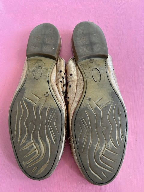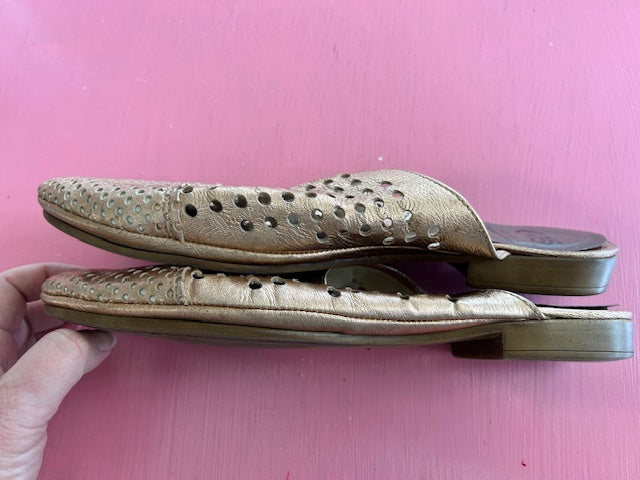 The pictures don't do the shimmering rose gold justice on these Portuguese-made slides.