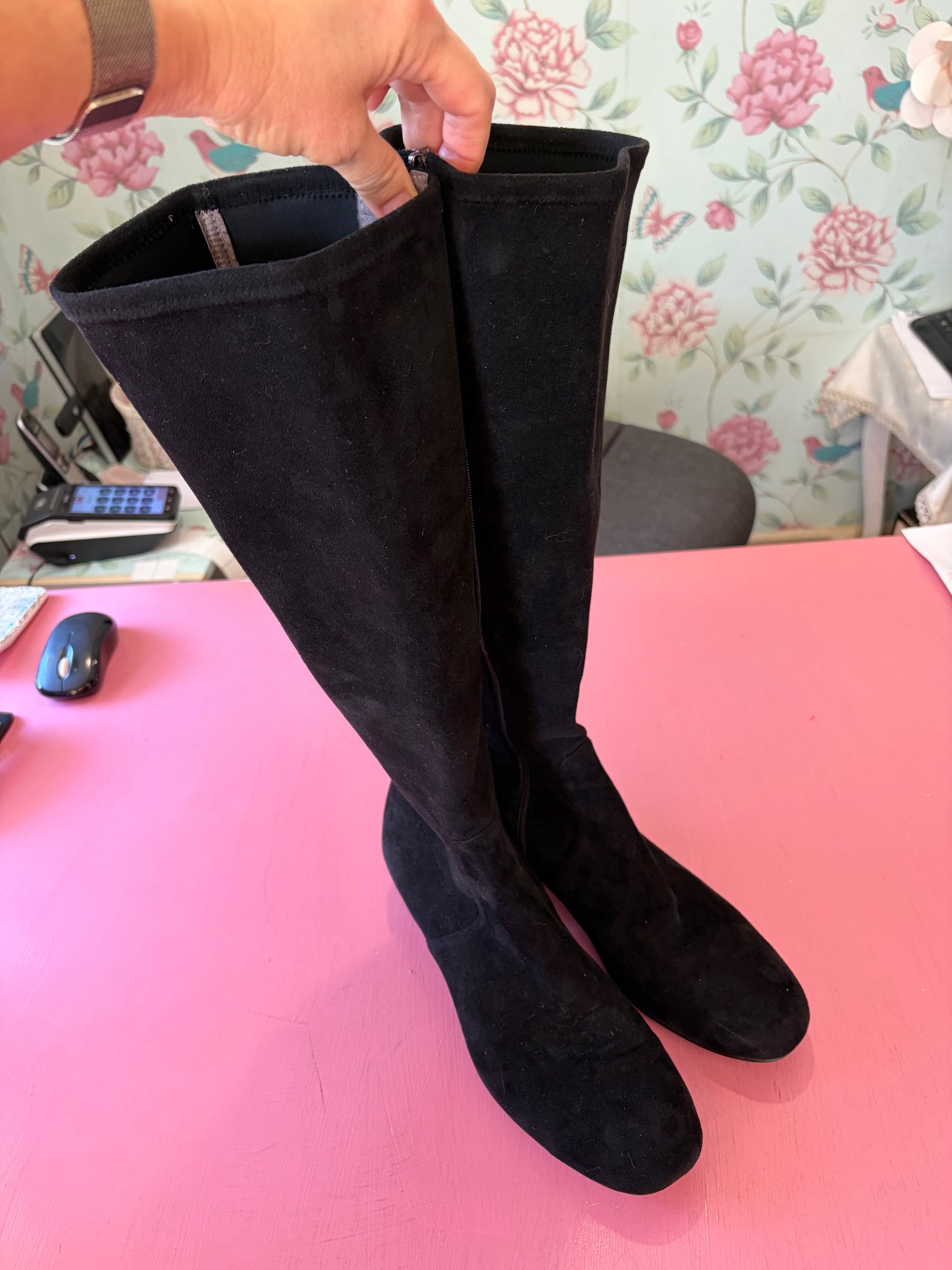 The Shoe Garden sells long shoes on consignment for customers. It is the customer who has provided the above information, including setting the price, and they are sold as they are provided. This is a non-negotiable price and there are no returns, exchanges or credits for the pre-loved range. If you are interested in selling your shoes on consignment, please see further info here