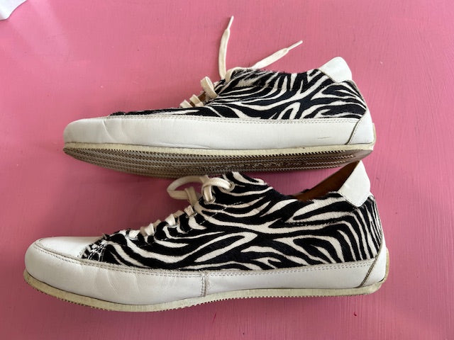 Fun sneakers in zebra print pattern hide.